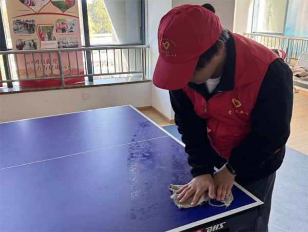 活动室是孩子们开展各种兴趣活动的地方,为了给他们营造一个舒适的活动空间,同学们对这里进行了重点清理。他们不仅打扫了地面和墙面,还对活动室内的各种器材进行了整理和摆放。