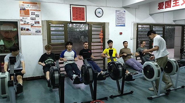 与此同时,为备战即将到来的亚洲杯赛艇锦标赛,赛艇俱乐部在国庆前夕组织了留学生选拔与集中训练。来自不同国家的青年们汇聚交大,共同挥桨、共逐梦想。在测功仪的律动中,他们以汗水磨砺技术,也以真诚交流文化。DavidFuente表示:“我的中文还不太好,但舵手用生动的翻译方式解释了动作要领,让我不仅掌握了技巧,也学到了新的中文词汇。”LorenzoLagna则说:“能与不同国家的伙伴并肩训练,是一种幸运。我们努力备赛的同时,也在分享文化与故事。我对即将到来的一切充满期待。”青春的能量因赛艇激荡,也在语言与文化的交融中,化为友谊的涟漪与文化的理解。