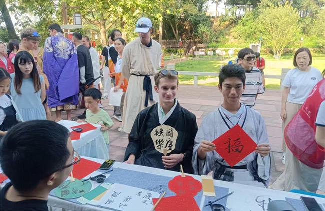 赛程落幕后,队员们暂别赛场的激情,走进成都非遗文化体验基地,感受书法的笔意、糖画的灵巧、陶艺的温度与汉服的典雅,以指尖触摸历史的纹理,在桨声之外领略中华文化的深厚底蕴。