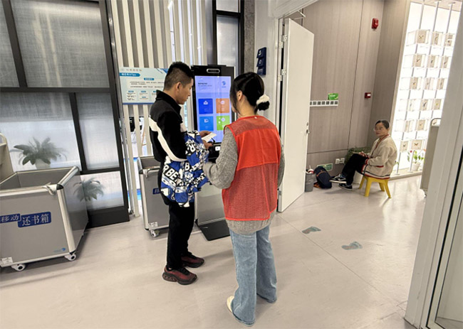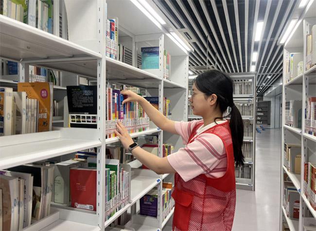 活动期间,志愿者们以精准分工筑牢服务防线。在借阅区域,他们提前熟悉馆藏分类逻辑,为读者提供书籍定位指引,协助梳理错架、乱架图书,让书架排列规范有序;针对老年读者、青少年等群体的不同需求,志愿者们耐心指导自助借还设备操作,细致解答借阅期限、续借流程等疑问;在公共阅览区,他们定时巡查维护环境整洁,轻声提醒保持安静,为读者营造沉浸式阅读氛围,用点滴行动化解服务堵点。
