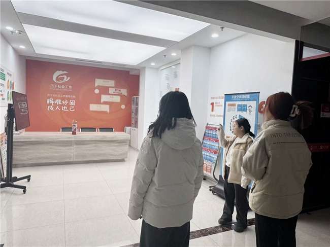 2月4日,实践团队到访济南市历下区社会工作服务总站,详细了解其在罕见病患者社会帮扶、资源链接、社区融入等方面的工作举措。鲜活的基层实践案例,让队员们看到了基层社工组织在民生保障中的独特价值,进一步拓宽了调研视野。在与基层社工的交流中,队员们体悟到基层工作者的辛劳与担当:他们是“最后一公里”的守护者,用实际行动诠释着“每一个小群体都不该被放弃”的信念。
