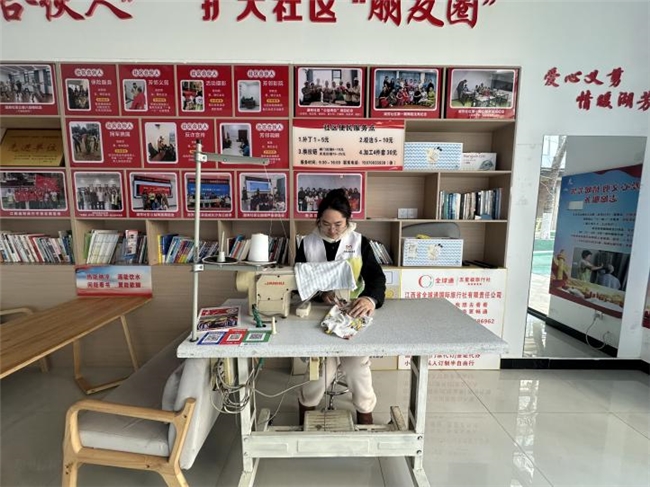 图2 志愿者为居民缝补衣物图
