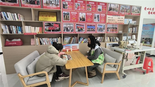 图3 志愿者陪伴孩子阅读红色书籍图