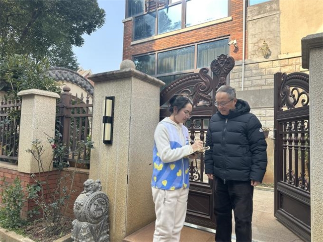 湖芳社区蓝色巡逻服务队由退伍军人志愿者组成,是社区平安的 “守护者”,采用 “散步、遛犬式” 隐蔽巡逻模式守护社区公共安全。罗方一伊刚加入队伍,便跟着退伍军人张师傅学习巡逻技巧,每日穿梭在社区的楼栋、绿化带与停车场之间,逐栋排查施工楼房的门窗、电路安全隐患,俯身检查消防通道是否被杂物堵塞,仔细查看消防器材的有效期。走访养犬居民时,她挨家挨户敲门,耐心讲解文明养犬规定,贴心提醒居民出门牵绳、及时清理宠物粪便,遇到居民有疑问的地方,她都会一一解答并做好记录。“这姑娘做事认真细致,上手很快,跟着我们巡逻从不喊累,还能及时发现细节问题,为社区安全排查添了不少力。” 社区综治工作人员对她的表现赞不绝口。