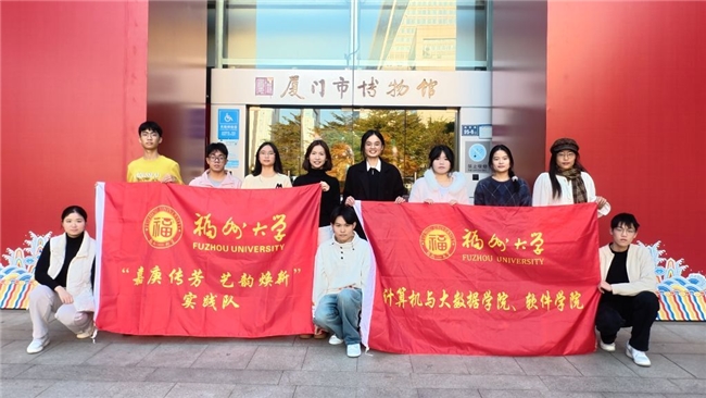 为赓续红色血脉、传承中华优秀传统文化,近日,福州大学计算机与大数据学院“嘉庚传芳,艺韵焕新”实践队走进厦门,开展文化遗产数字赋能与红色精神传承主题社会实践。福大青年学子立足计算机专业特色,踏访鹭岛文博场馆与红色教育阵地,在行走中感悟文脉底蕴、汲取精神力量,以青春之智探索数字技术与文化传承的融合路径,用实际行动诠释新时代青年的文化担当。