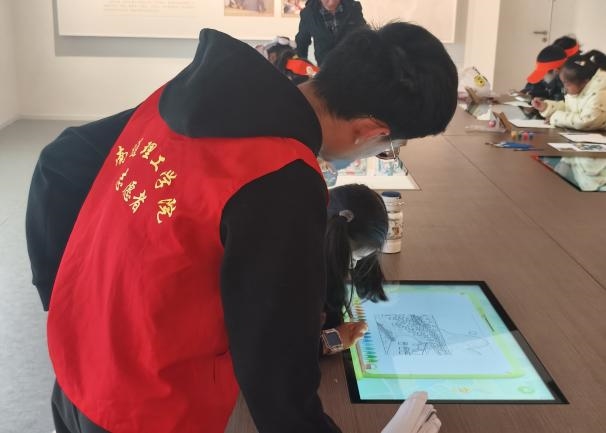 团队联合“六合传媒”开展冶山农民画非遗体验活动,组织青少年走进六合区博物馆农民画展区,全程指导并协助孩子们感受农民画创作的乐趣。活动创新采用‘传统手绘+数字体验’双模式,孩子们既可执笔蘸色完成传统手绘创作,也可通过电子设备为农民画黑白底稿进行虚拟上色,传统笔墨与数字技术碰撞出全新的艺术表达形式。多元体验形式让青少年以趣味方式走近冶山农民画非遗文化,也为金陵六合寻艺团探索非遗传承创新路径提供了宝贵实践参考,助力冶山农民画实现活态传承与创新传播。