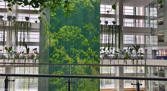 上午8:40,全体参与师生在西安交通大学创新港校区涵英楼北侧准时集合出发。抵达广联达西安数字建筑研发大厦后,企业工作人员首先带领师生参观了园区建筑,详细介绍了大厦的设计理念与建筑特色。这座被誉为建筑行业数字化转型"样板间"的大厦,融合了海绵城市、光伏发电、智能温控等多项绿色技术,36米高的巨型水幕瀑布全部采用回收雨水供应,四季常青的生态中庭营造出舒适宜人的办公环境。其简约现代、绿色智能的建筑风格,正是广联达"用数字技术让每一个工程项目成功"发展理念的直观体现。