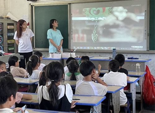 首先,志愿者向同学们认真讲解了什么是非物质文化遗产,非物质文化遗产的形式以及我国部分非物质文化遗产。他们通过展示丰富生动的图片和视频,让孩子们在这些栩栩如生的画像下对中国的非遗文化产生了浓厚的兴趣。