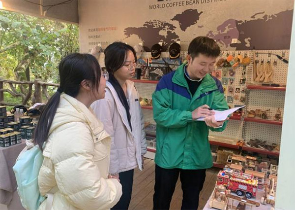 (团队成员向德天瀑布风景区工作人员发放问卷)