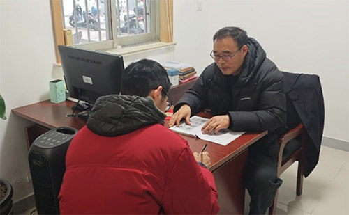 图一成员在社区负责人处了解工作现状