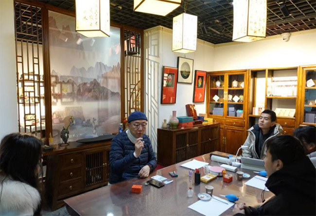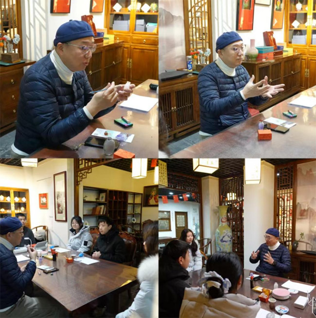 结束初体验后,团队来到此次实践的第二站——陕西秦派内画非遗工坊。在这里队员们与工坊负责人张弛展开面对面访谈,深入探寻秦派内画的技艺脉络与传承现状。谈及技艺传承,张弛直言,当下秦派内画正面临“后继乏人”的现实困境。秦派内画从来不是单纯的绘画技巧,而是秦地文化的具象载体,壶中勾勒的一山一水、一草一木,都藏着长安的气韵,这份文化传承,需要有人接棒坚守。