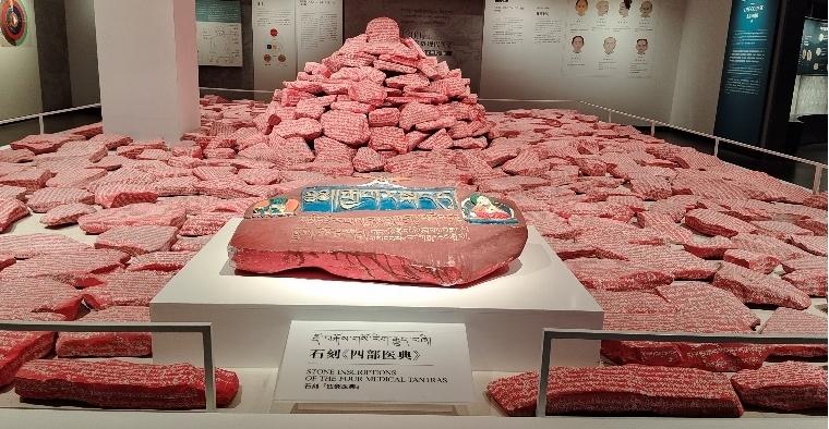 走进大厅左手边就是我们的“古籍文献展厅”, 古籍文献展厅陈列了藏医药文献中最具代表性的1000多函典籍,还展出了300多部现当代藏医药学书籍和古籍印版。通过古籍印板,《四部医典》、《月王药诊》、《祖先口述》、《四部医典蓝琉璃》、《晶珠本草》等著名典籍,显示了作为世界四大传统医学之一的藏医药学浩瀚的典籍和博大精深、体系完整的藏医药学理论。数百部现当代藏医药学书籍展示了古老的藏医药学理论研究后继有人。