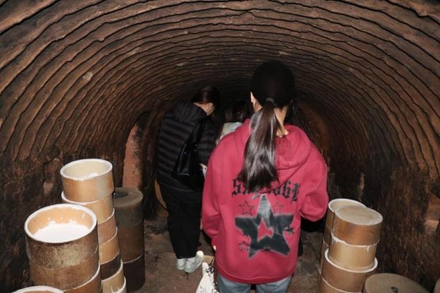 在月记窑,队员们亲见柴烧窑炉熄火后的温润余韵,讲解员向队员们介绍传统柴烧能给瓷器带来不可复制的“火痕”美学,直观感受到了传统柴烧的独特魅力。在太平宫窑,守窑人带领队员们走进龙窑内部,观察千年龙窑的窑炉结构,讲述柴烧技艺的艰辛与传承困境。老师傅们已年逾花甲,年轻人却鲜少愿意接手,这种“热闹背后的冷清”,让队员们深刻感受到非遗传承的紧迫与不易,也更加明确了青年在文化接力中的责任。