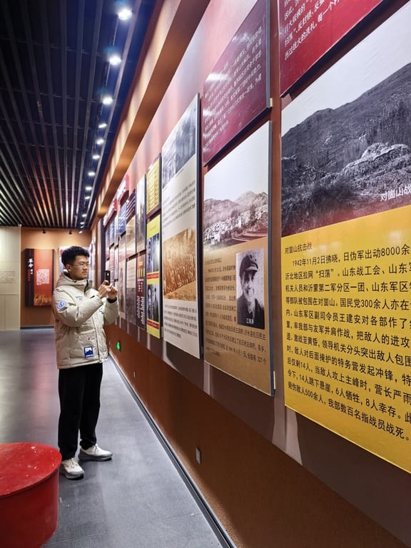 假期伊始,团队成员兵分多路,返回各自家乡的红色革命圣地展开全方位图像采集。在临沂沂水博物馆,细致拍摄历史文物与战役场景复原展区;济南、菏泽、青岛等多地红色地标也留下成员足迹。他们蹲守光影、调整角度,精准捕捉每一处红色印记,同时同步完成素材分类标注、像素优化等数字化预处理,累计采集高清图像500余张、短视频素材30余段,为数字展馆建设储备丰富资源。