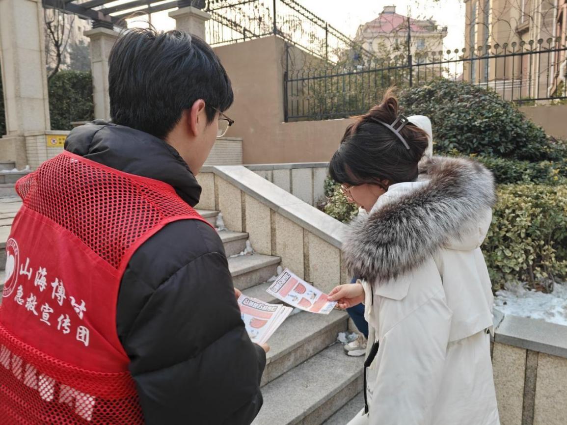 紧接着,宣传团成员转赴田和街道田西社区,在城市主干道旁的人行区域开展流动宣传。成员向过往行人发放急救手册,针对冬季高发的冻伤、滑倒摔伤等意外状况,讲解现场急救与处置要点,旨在提升居民应对季节性突发意外事件的实践能力。
