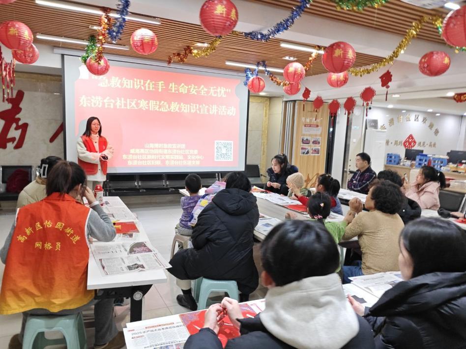 随后,在实操演示环节中,宣讲成员借助模拟教具进行动作示范,并指导家长与儿童分组进行练习。针对手部姿势不规范、按压节奏不稳定等情况,现场进行逐一纠正,确保动作标准。儿童在家长协助下参与模拟演练,加深对急救流程的理解。活动现场同步设置急救知识展板,对操作流程进行图示说明,强化学习效果。本次活动的开展,为提升社区家庭应急处置能力打下良好基础,充分展示了山东大学海洋学院志愿力量服务基层社区的实践成效,对推动急救知识普及、构建安全和谐社区环境具有重要意义。