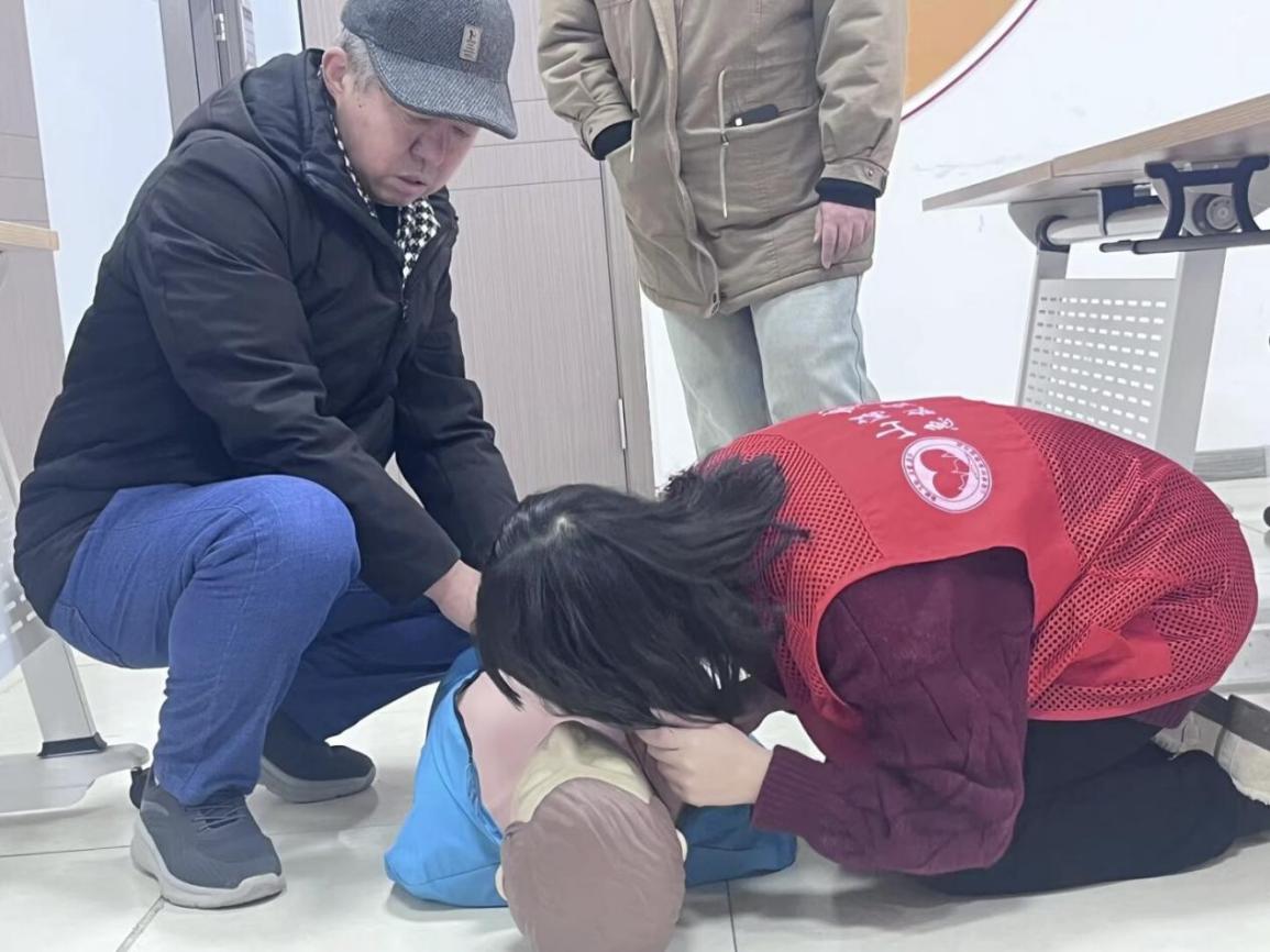 紧接着,团队成员采用理论讲解与模拟演示相结合的方式,借助模拟人教具,分步演示心肺复苏判断流程、呼救方法、体位调整技巧以及胸外按压与人工呼吸规范动作。在海姆立克急救法教学环节,成员们细致区分部分梗阻与完全梗阻不同表现,演示针对老年人的背部叩击法与腹部冲击法。现场居民认真观看演示,多位老人在志愿者指导下进行实操练习,在互动中初步掌握关键要领。