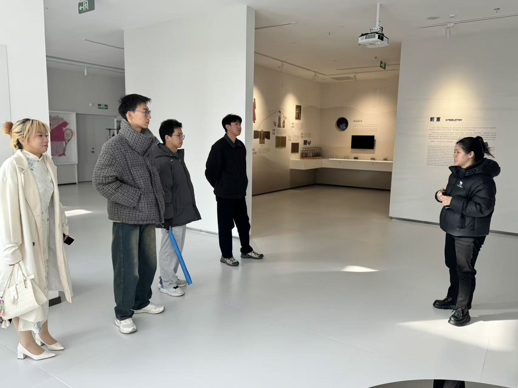 活动伊始,“文心赓续队” 成员在博物馆讲解员的带领下,开启了扎染文化探索之旅。讲解员以博物馆 “扎染三篇章” 展陈为脉络,结合馆内珍贵藏品、历史史料及经典扎染作品,生动讲述了扎染从古代民间工艺到国家级非物质文化遗产的发展历程,详细介绍了不同地域扎染的风格特色、制作技法的演变轨迹,以及扎染在传统生活与现代场景中的传承应用。深入浅出的讲解,让队员们深刻领悟到这门 “指尖艺术” 背后承载的深厚文化内涵与坚守百年的匠人精神。