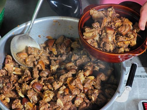 实践团到访的时候,正是清晨。后厨热气蒸腾,揭锅的一瞬,香气直直撞进人的鼻子里。老板正俯身翻动着锅里的肉块,动作不紧不慢,眼神里透着手艺人特有的笃定。他告诉我们,这里的每一个步骤都不能乱:选什么部位的肉、放多少酱料、什么时候下调料、焖几个钟头——全是定数。