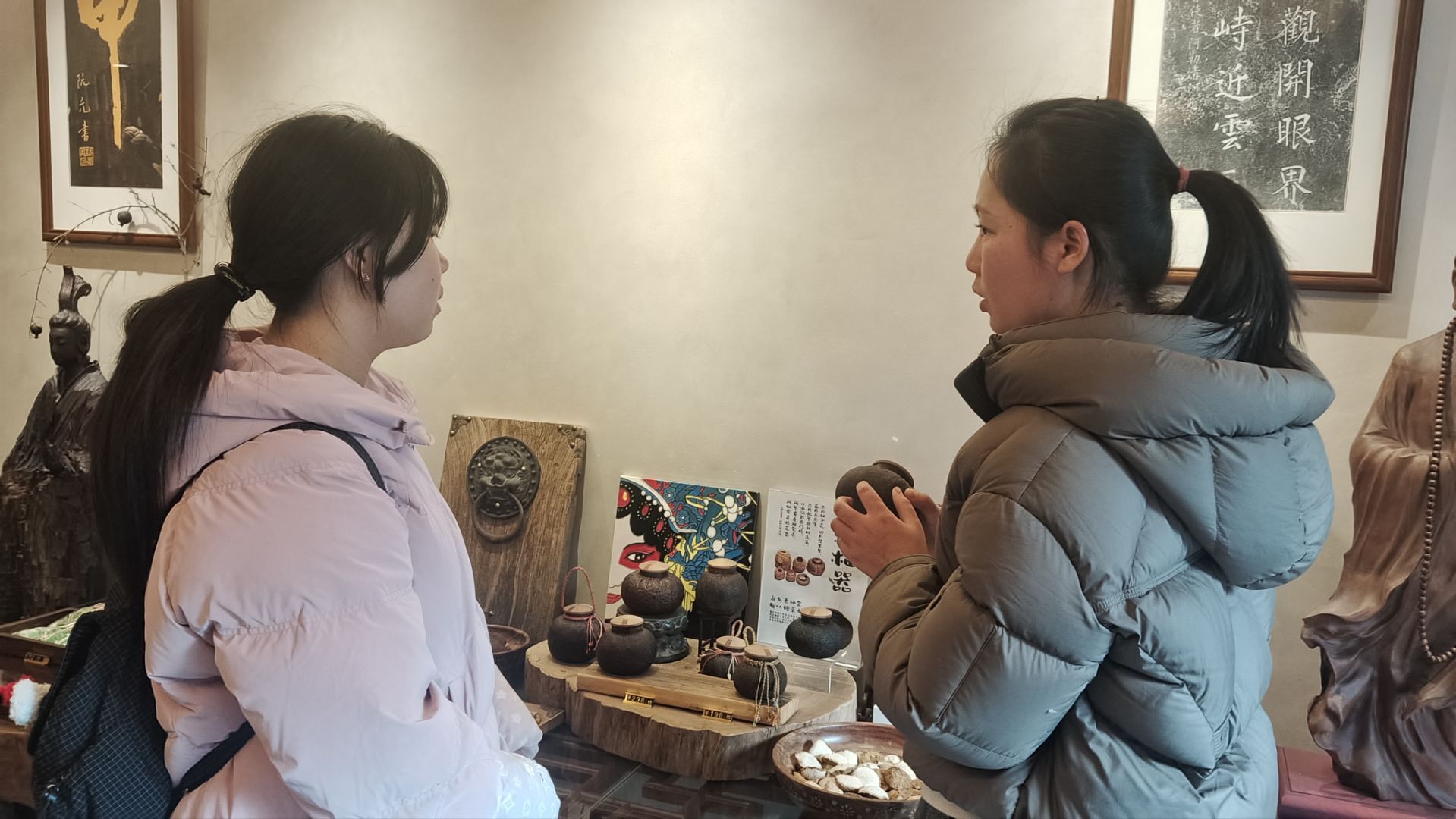 实践团的调研行程围绕桂林柚罐文化展开,首站来到桂林博物馆。虽实地未见到柚罐展品,团队仍依托网络资料,梳理了柚罐在桂林非遗文化体系中的历史定位、馆藏背景及文化价值,为后续实地调研奠定理论基础。在东西巷状元阁,实践团走进经营桂林非遗手工艺品的店铺,与店主深入交流,详细询问并记录了柚罐的传统制作方法、品类用途等实用信息,直观了解到柚罐作为非遗手工艺品在民间的经营与传播现状,掌握了柚罐从制作到销售的民间流通环节。