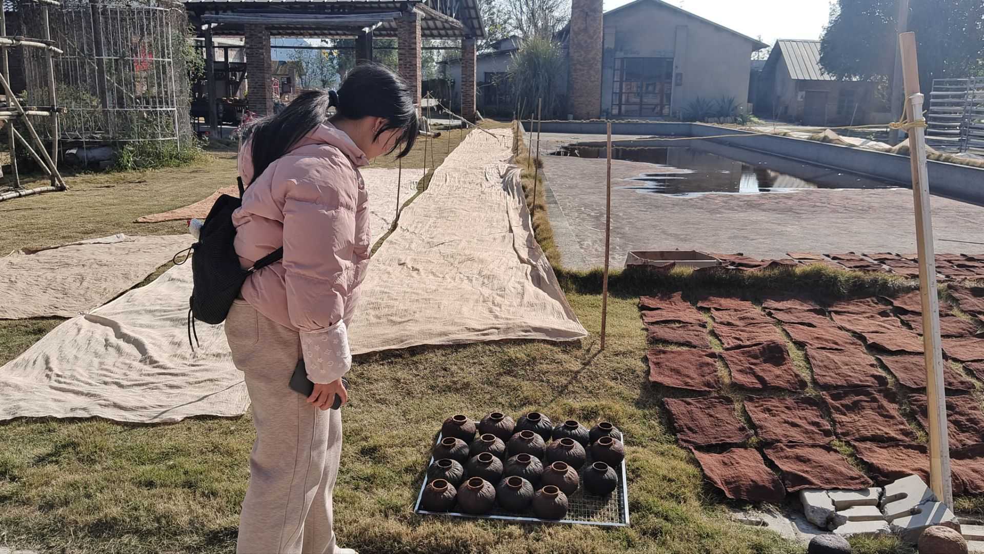 拓漓文化产业园是本次调研的重要站点,该园区位于雁山区漓江西岸柘木镇,是融合非遗传承与文旅发展的特色园区。实践团探访了园内以非遗传承人王伯杨命名的非遗工坊,亲眼见到工人制作柚罐的生产场景,也看到园区专门用于晾干柚罐的草地,近距离观察柚罐制作的实操流程与工艺细节。同时,团队了解到产业园依托废弃农械厂改造的背景,以及其开展柚罐等非遗项目技艺培训、研发生产、展览销售的全链条运营模式,知晓游客可在园区体验柚罐制作等非遗项目的文旅融合形式。