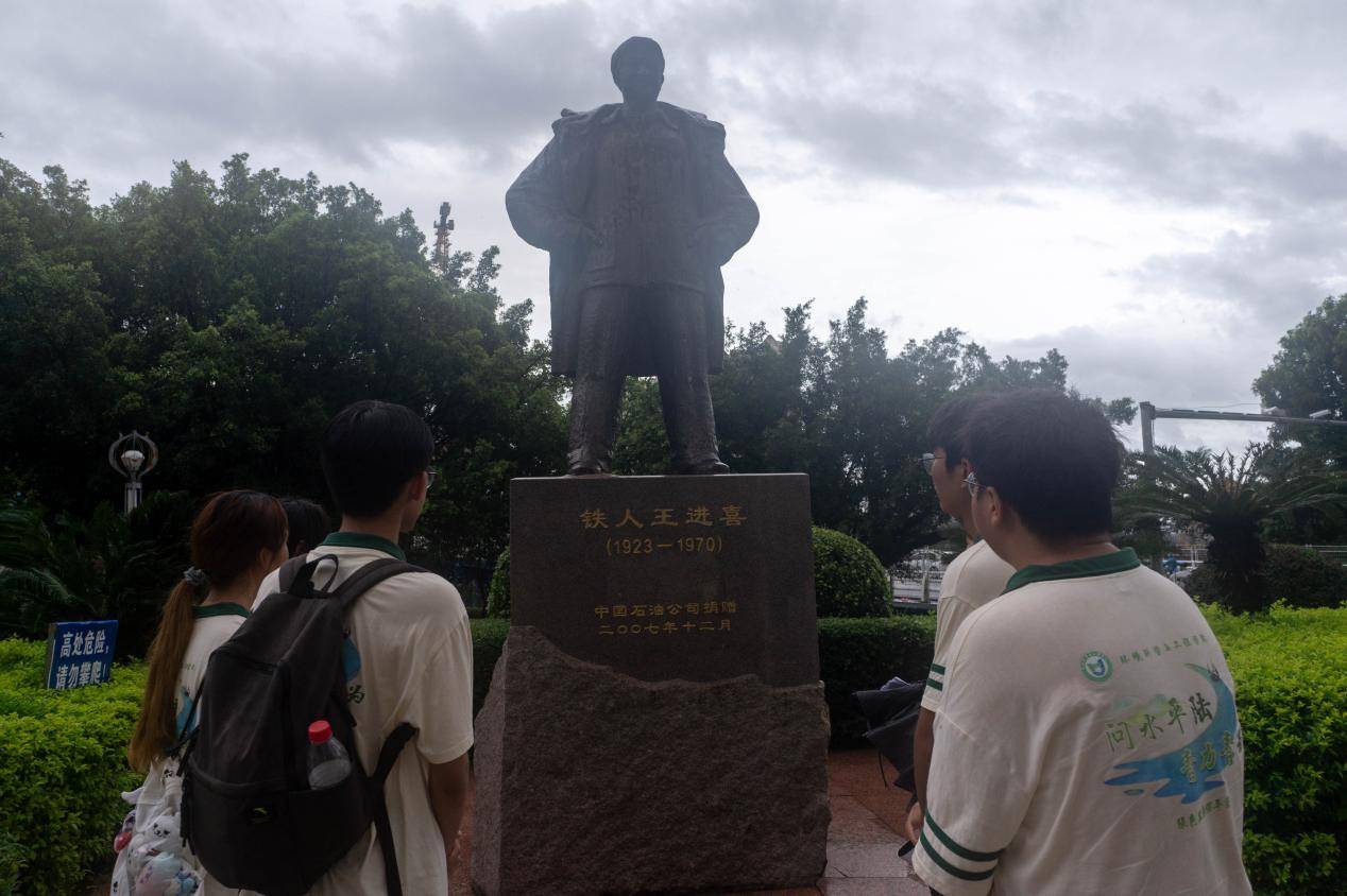 依托进喜园的红色资源,实践团开展“铁人精神”学习活动。在王进喜事迹碑前,团队成员通过观看图文资料、聆听讲解,深入了解铁人王进喜“为国分忧、为民族争气”的奋斗故事——从“跳进泥浆池用身体搅拌泥浆”的拼搏场景,到“宁肯少活二十年,拼命也要拿下大油田”的壮志豪情,深刻感悟其不畏艰难、实干担当的精神内涵。“铁人能为国家石油事业拼命,我们也要为家乡绿水青山出力。”实践团成员葛从浩坚定地说。大家表示,将把铁人精神转化为践行绿色发展的动力,在环保实践中保持实干劲头,在服务基层中彰显青春担当。