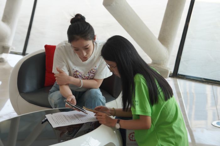 图为实践团成员与艺术团团长王老师进行访谈 陈静涵供图