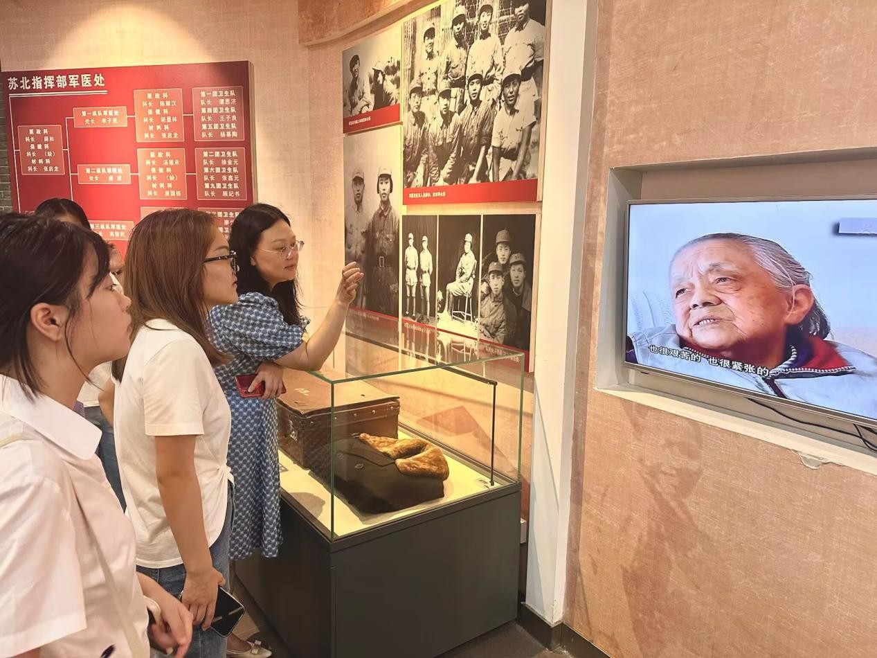 图为黄桥战役纪念馆为团队成员讲解 刘舒摄