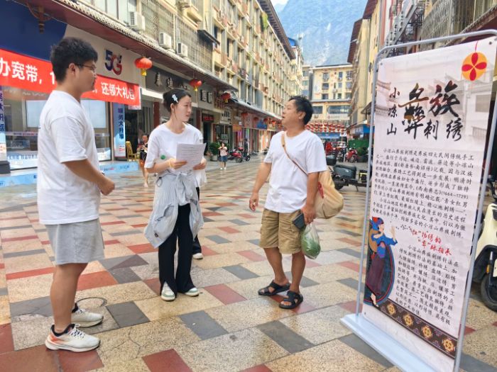 青春献良策:调研赋能非遗振兴新路径实践活动最后,队员们手持问卷深入县城街头巷尾,与当地绣娘、商户深入交流,梳理出彝绣传承面临的现实挑战。团队针对不同年龄群体采用线上与线下相结合的调研方式,提出针对小凉山彝绣发展现状的青年方案:在品牌建设上深挖自身文化内涵,打造辨识度高的品牌;将传统纹样与现代设计融合,开发更多贴合市场需求的产品等方式助力小凉山彝绣的高效持续发展,后续实践团队将结合专业所长,整理形成调研报告与建议,提出青年保护与传承非遗文化的可行性方案,助力小凉山彝绣实现“传统技艺保根脉、创新设计助力弘扬”的发展模式。