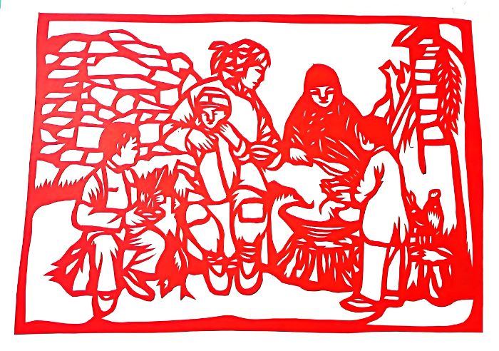 社区宣讲会上,队员们展开“沂蒙六嫂”系列剪纸,指着明德英的剪影讲起乳汁救伤员的故事,又以“火线桥”剪纸为引,讲述十位妇女用身体架桥的壮举。宣讲会后,队员们为老党员、空巢老人剪制吉祥窗花,送去温暖的同时,也收集到许多红嫂故事的细节。“王换于当年自己吃不饱,也要把粮食省给伤员和孩子。”李大爷的话,被队员们记下来补充到作品介绍中。