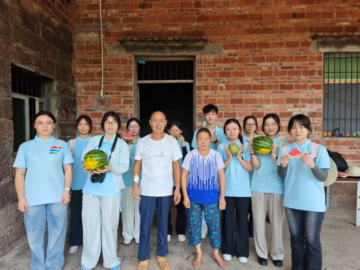 上午,实践团成员开展入户访谈,先后走访了当地几户村民。实践团与村民们面对面交流,在交流过程中,成员们了解到张阿姨早年在广东务工,后因家庭原因被迫返乡务农,目前在当地泡菜厂工作。据她讲述,自己曾是建档立卡贫困户,在国家大力推进扶贫工作的帮扶下,在2015年完成脱贫。随后,实践团来到村民骆爷爷家。在与老人交谈时,骆爷爷感慨道:“政府真是好啊,一心为我们村民着想,实实在在帮我们解决问题,凡事都从我们老百姓的需求出发。”紧接着实践团来到了付奶奶家中,简短交流中了解到付奶奶身患小儿麻痹症,目前主要靠经营便利店维持生计,但付奶奶言语间难掩对当下生活的满意。她颤巍巍地指着货架上整齐排列的日用品,笑着说:“现在进货方便,邻里也常来照顾生意,吃穿不愁,挺好的。”最后实践团去到付爷爷夫妇家,他们拿出自家种的西瓜,热情地分享给实践团成员们品尝。实践团在与爷爷奶奶交流时,问及他们对当下生活的感受。两位老人表示,在国家的帮扶下,如今不仅能随时用上洁净的水源,直通家门口的公路让他们能随时出行,自家种植的农产品运往市场销售也愈发便捷。他们由衷表示,对目前的生活状况感到十分满足。走访尾声,实践团开展了一场“定格幸福”的温情拍摄,队员彭大燕用相机为爷爷奶奶拍下生活照,以暖心举动拉近与村民的距离。镜头里,他们朴实的笑容格外动人,这正是对实践团“三下乡”意义最生动的诠释。