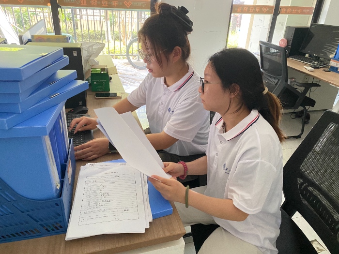 资料整理之余,实践成员们还承担起“临时家长”的角色,陪孩子写作业,帮忙碌的监护人照看孩子,成为社区服务的“青春帮手”。这种“协助+服务”的模式,既减轻了基层负担,也让新就业群体感受到了社区的温暖。