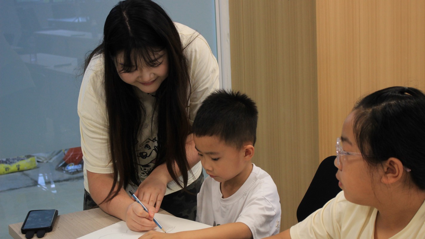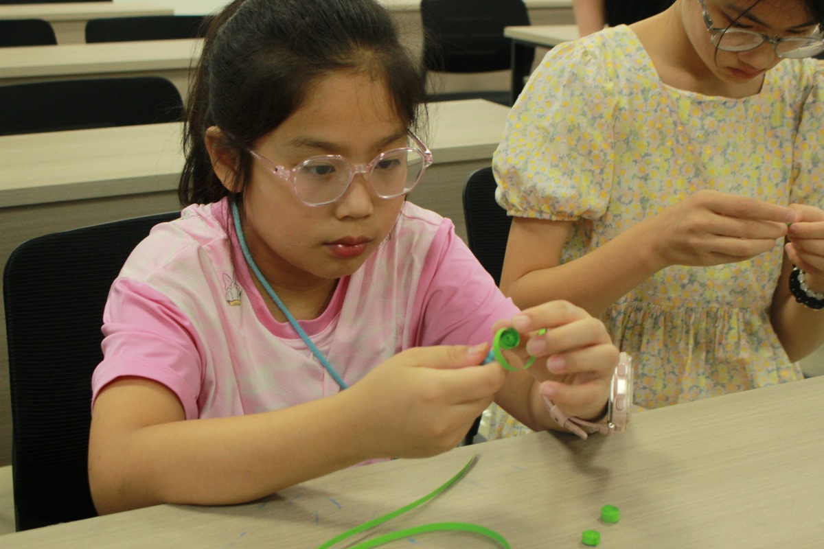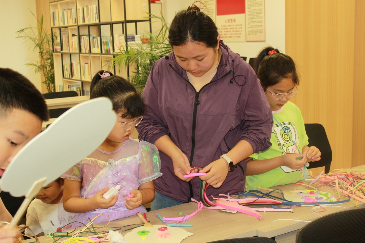 创意手工美育活动在学生绘画启蒙阶段的价值举足轻重。它既是一种充满创造力的表达途径,更是培养学生观察能力、想象能力与创新素养的有效手段。实践团队通过教授小朋友制作衍纸书签与团扇,锻炼小朋友的手脑协调能力,让他们在卷、捏、拼贴等过程中获得成就感,增强自信心,促进想象力、审美能力、动手能力及语言表达能力的发展。