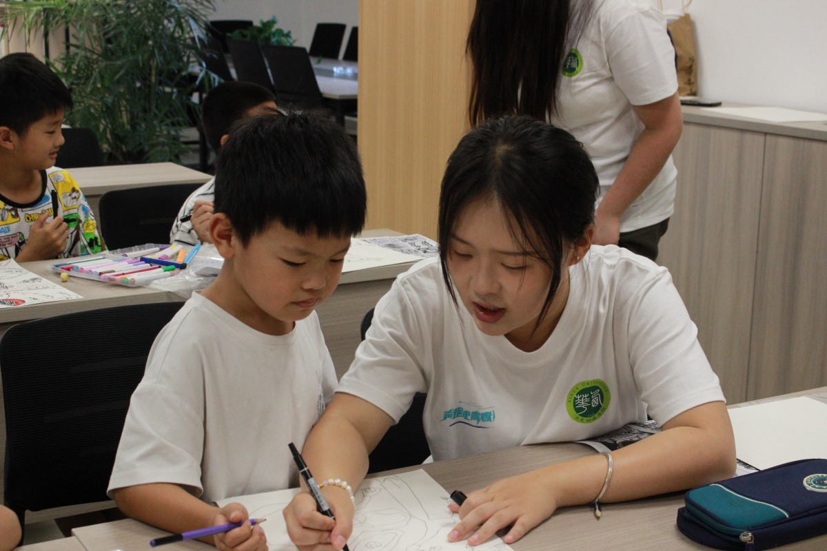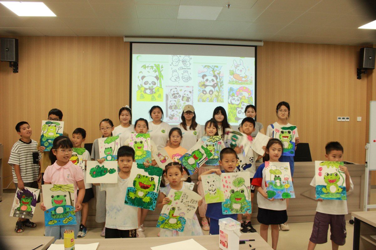 本次活动以绘画为核心,设创意装饰画和动物卡通创意画主题,志愿者用有趣的教学形式带孩子们发现生活之美,用画笔表达情感与想法,耐心引导他们学习色彩、线条、构图等技法,激发孩子们的创造力。团队还将美育与儿童心理健康结合,通过幸福指数表记录活动前后孩子们的心理变化并做好数据记录。