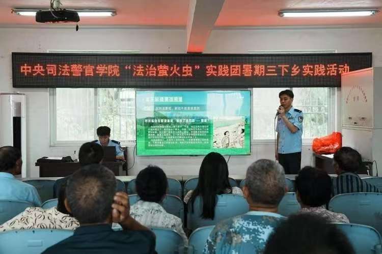 图为实践团在村委会进行法律宣讲