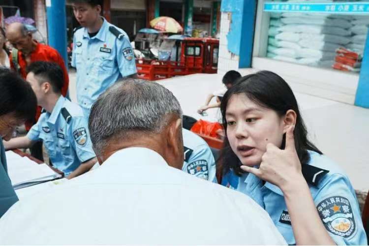 8月8日,实践团来到江油市河口镇集市上,开展“智惠乡村”专项行动。成员们身着警服,在河口镇集市入口处设立“法律服务点”,功能涵盖资料发放、问卷调研、法律咨询三大板块。