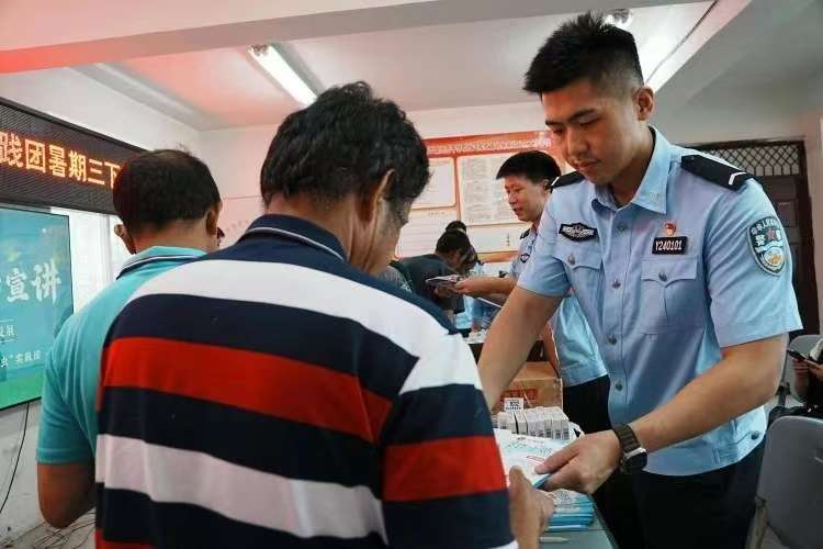 实践团为活动准备了400余张反诈骗宣传单和150把印有“防骗口诀”的宣传扇。活动开始后,村民们陆续驻足咨询,队员们一边发放宣传资料,一边结合“冒充公检法诈骗”、“虚假网络贷款诈骗”等常见案例,用通俗的语言讲解诈骗特征及防范要点。
