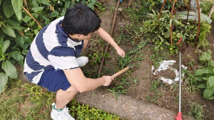 在另一片田畴,另一位团队成员正在家乡的农田里挥汗如雨。他躬身于青苗间,手工除草,汗珠滴落泥土。“坚持手工除草,不打除草剂,这地才能更有劲儿。”他向村民解释着绿色农作的价值。从除草到收割,他全程参与多项农事,亲身体验农耕辛劳,理解了绿色生产模式对守护土地健康、提升农产品价值的重要性。沉重的农具、滴滴的汗水,让他对“粒粒皆辛苦”有了切身体会。他的参与不仅缓解了农忙压力,更以实际行动为绿色农业发展注入青春活力。