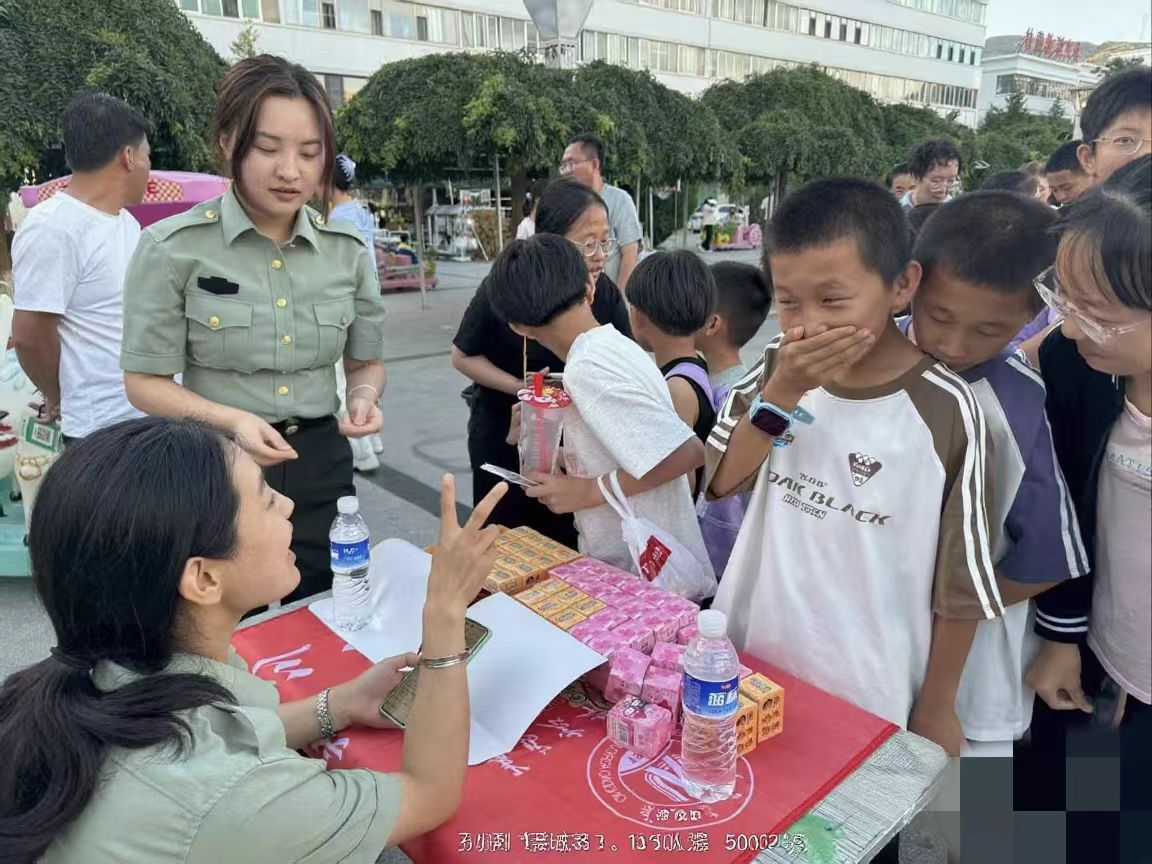 在会宁的北华广场上,实践团搭建起征兵宣传的桥梁。他们通过发放手册、军事训练照片展示、国防知识竞答等形式,他们向青年群体传递“强军报国”的信念,为孩子们播下崇军尚武的种子。活动现场,一位高中生激动地说:“哥哥姐姐们的讲解,让我对军营生活充满向往!”