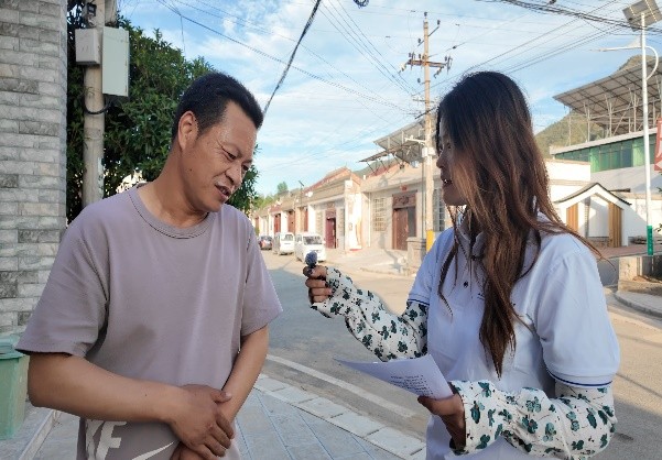 为精准把握村民需求,实践团成员深入田间地头,与村民面对面交流。大家纷纷表示,期待墙体美化既能让村庄更美观,也能展现周一村的独特文化与自然风光,尤其希望突出猕猴桃助农产业。谈及墙体主题与风格时,村民们提出诸多创意想法,如融入农产品发展、党建、童趣等元素。