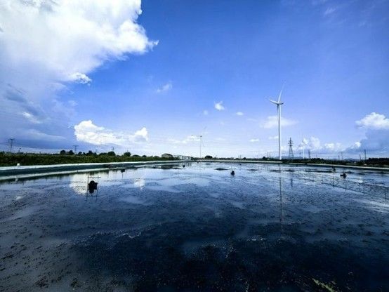 踏入金紫村,一幅生态与产业共生的画卷徐徐展开。澄澈蓝天与粼粼蟹塘相映成趣,光伏板在塘畔有序铺展,风车悠悠转动,勾勒出生态养殖的天然基底。调研团队先行开展风景拍摄,记录下这方水土的独特风貌——蟹塘如镜,倒映着蓝天白云与新能源设施。水草在塘中若隐若现,不仅是螃蟹栖息的乐园,更暗藏生态养殖与乡村发展的关联密码,为后续调研埋下生态伏笔。
