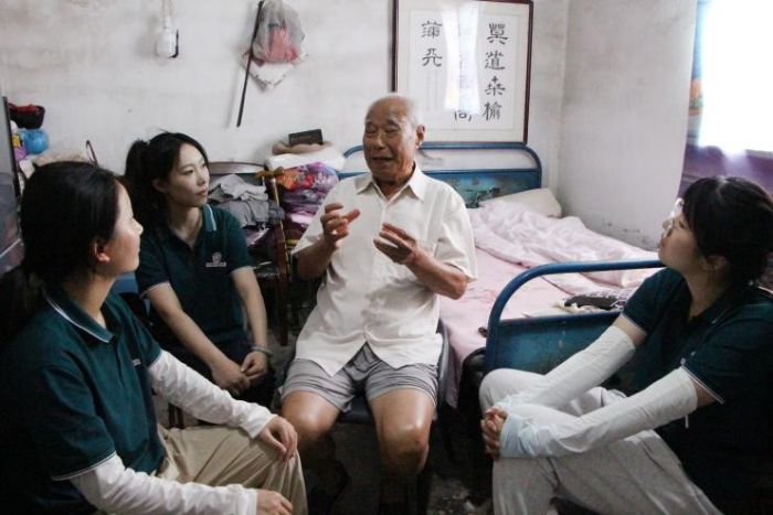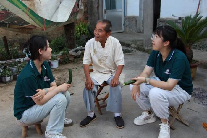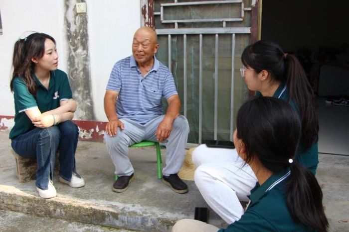 图为“红心润心团队”对学生代表进行家访