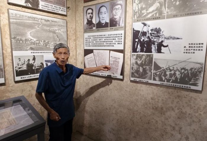 图为“红心润心团队”在小李庄纪念馆听红色讲解员讲述淮海战役史