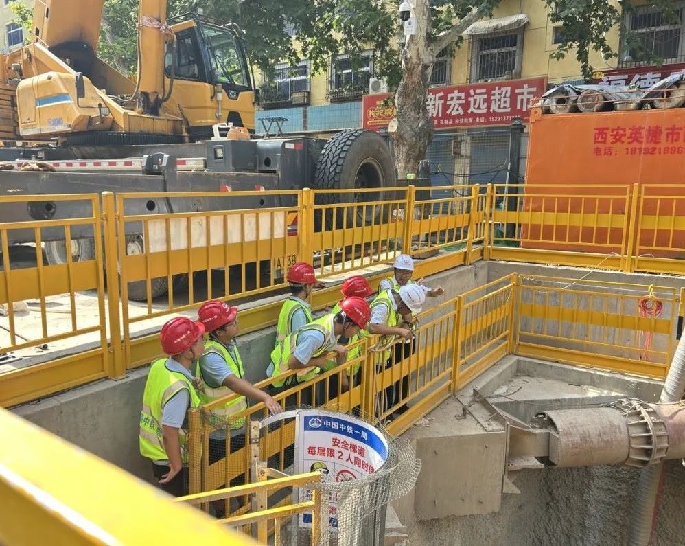 现场项目书记进一步讲述了泄洪管道的基本组成结合CAD图纸为大家介绍了尺寸、设计、池体等还讲解了管道间预制螺纹实地感受到 CAD 识图与工程力学等课程知识在施工环节的具体体现。随后大家来到热火朝天的施工现场站在基坑护栏旁已打好支护结构的基坑映入眼帘距离地面 40 米的深坑底部隐约传来机器的轰鸣工人正站在管道上作业项目书记指着基坑支护结构解释道这正是工程力学中结构稳定性原理的实际应用这番景象让大家真切感受到不同于课本学习的实际生产场景。